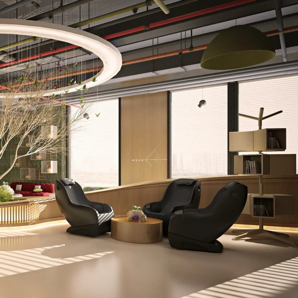 The minimalist design of the Model A blends harmoniously into any space – be it a living room, spa, or office. Its compact form exudes calm and clarity without compromising comfort. Two armchairs create a space for conversation or quiet relaxation – a place where technology and aesthetics come together in perfect harmony.
