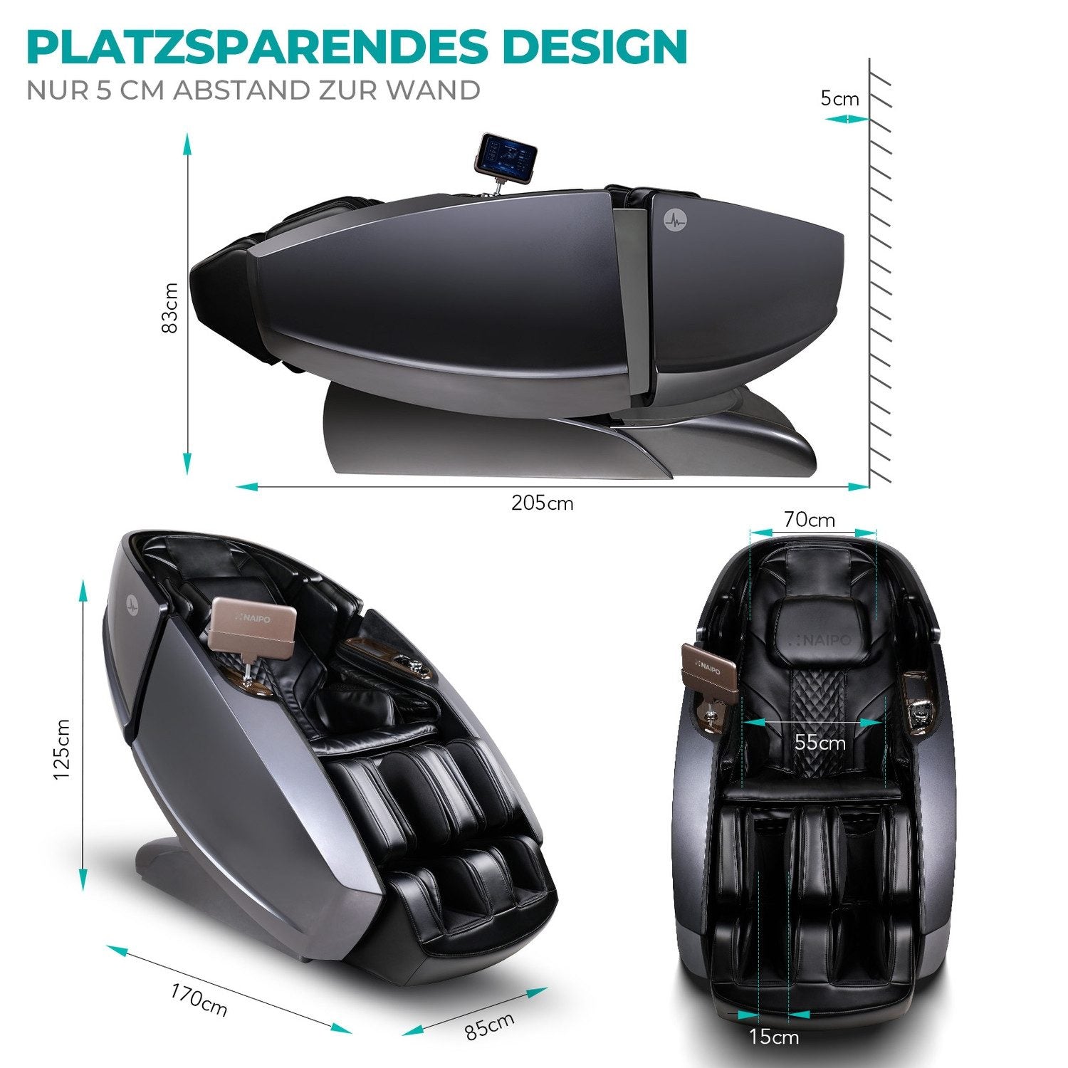 Entwickelt für Körpergrößen von 150 bis 200 cm und bis 150 kg – ein kraftvoller Ruhepol, der Technik und Wohlgefühl nahtlos verbindet.